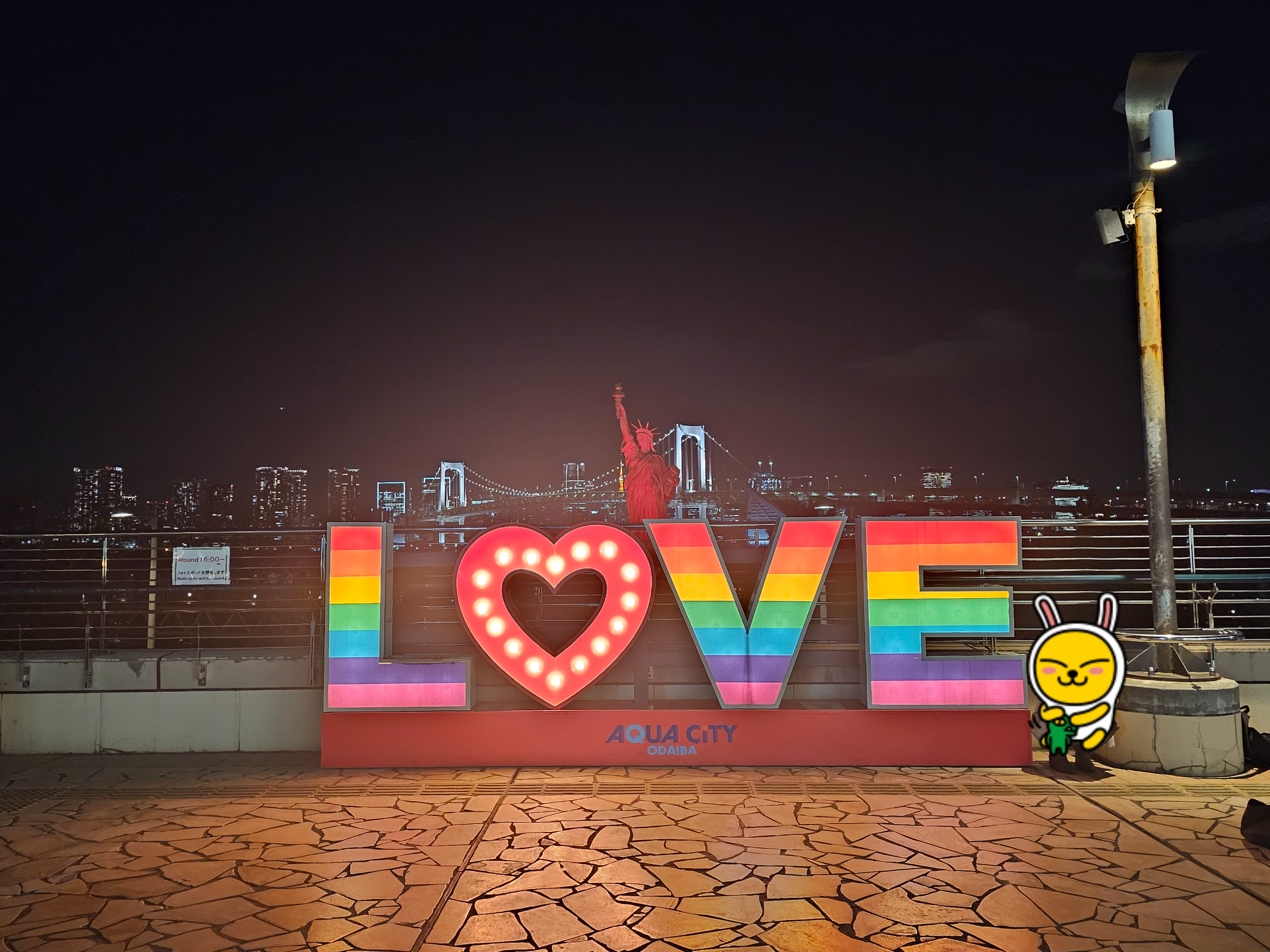 오다이바의 러브 전광판(?)과 자유의 여신상(?)