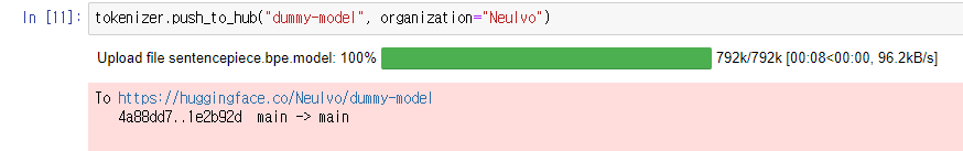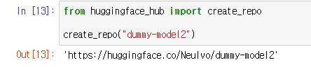 repo_id에 원격 repository경로를 씀으로써 파일을 올릴 수 있다. (최대 5GB)