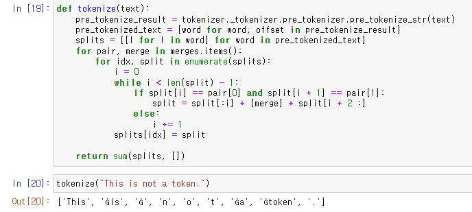 새로운 단어를 merge rule에서 찾아서 tokenize해주는 함수를 작성하고