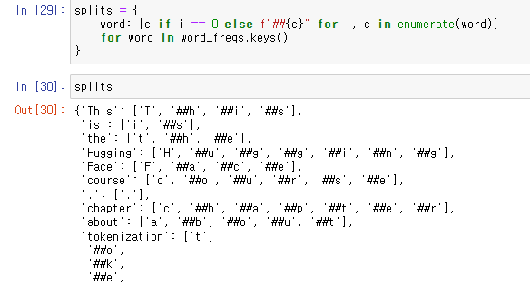 initial vocabulary를 만들 때 subwords 앞에는 ##라는 prefix가 붙으며,
