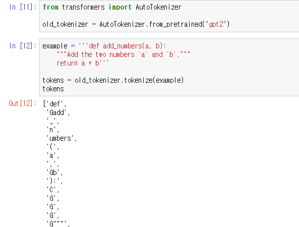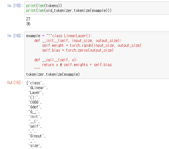 기존 토크나이저와 차이가 있음을 다시 한번 확인하였다.