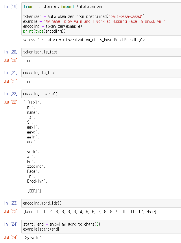 만약 특정한 tokenizer(여기선 BertTokenizerFast)를 사용한다면,