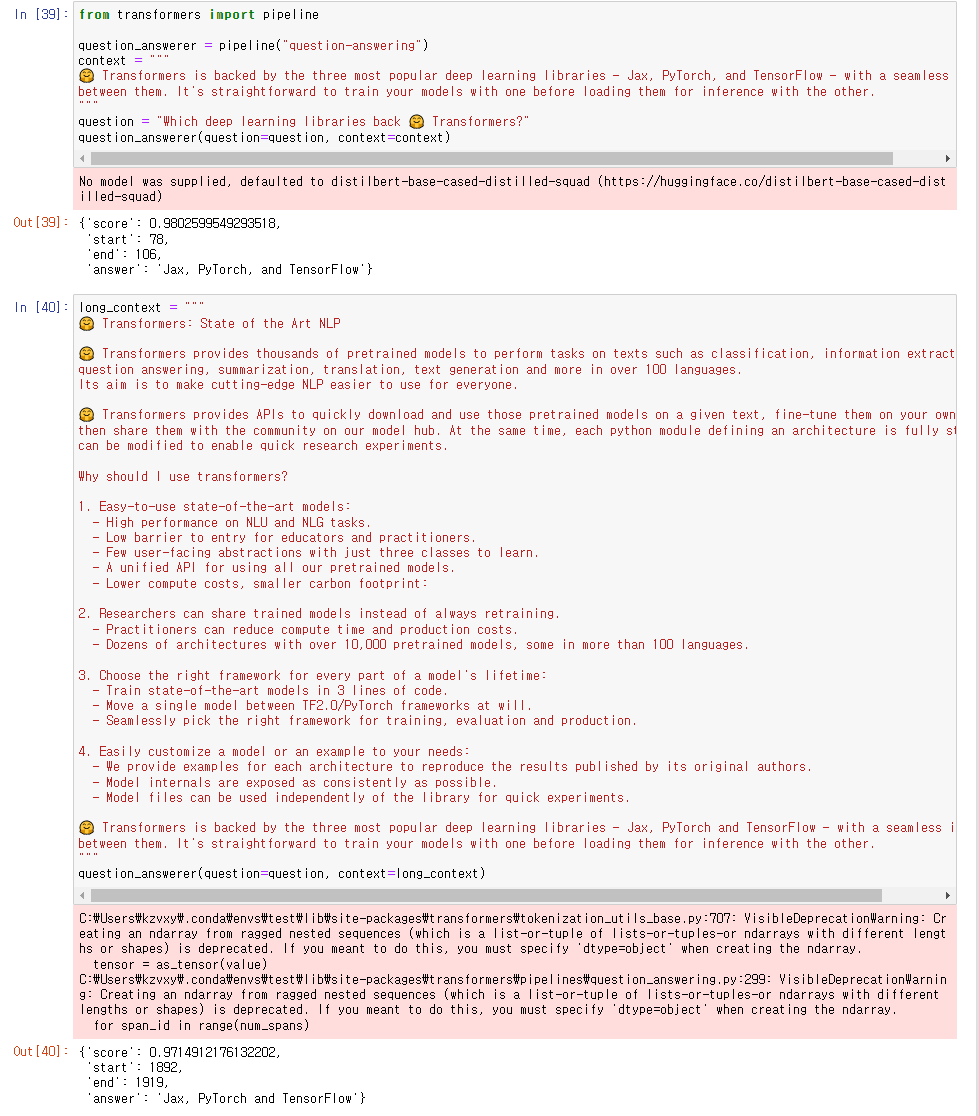 나누어진 context에 따라 결과가 각각 나왔다. 두 번째 결과의 score가 더 높다.