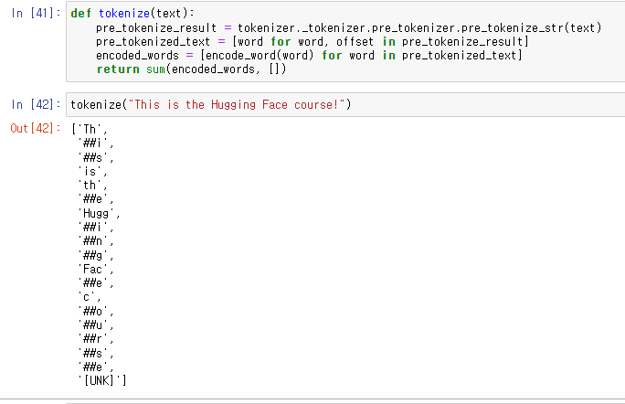 bpe와 달리 vocabulary에 단어가 없을 경우 전체를 [UNK](unknown)으로 지정한다.