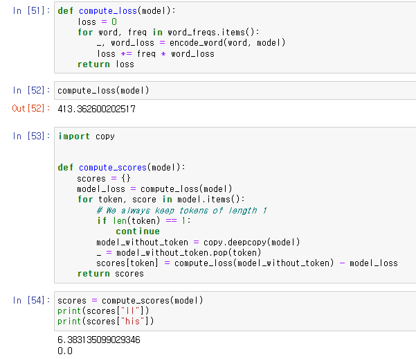token을 지웠을 때 증가하는 loss값을 계산하는 함수를 짬.