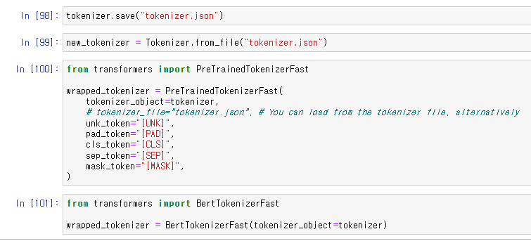 그리고 새롭게 만든 토크나이저를 가볍게 저장.