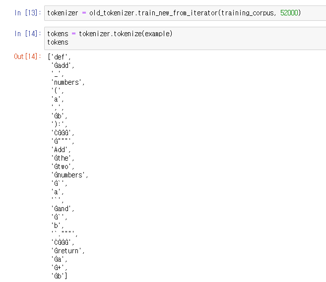 train_new_from_iterator() 를 통해 만든 토크나이저로 예제 문장을 처리한 결과