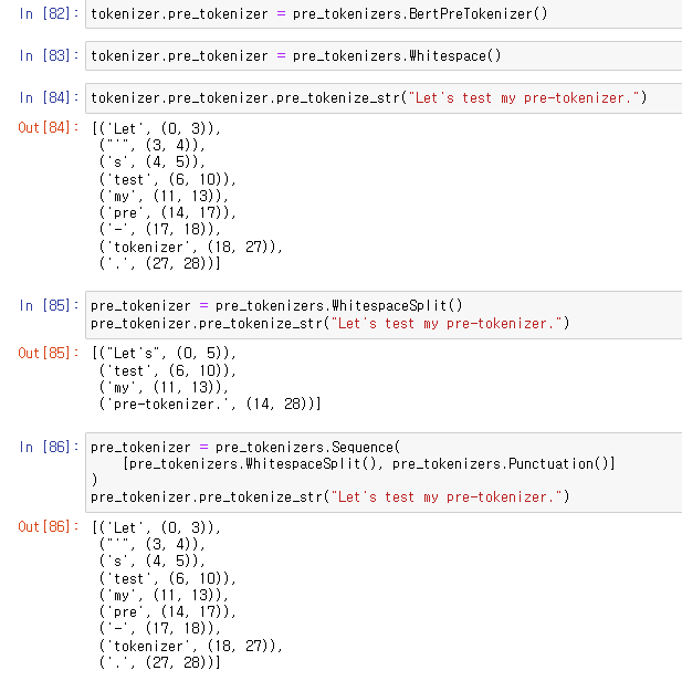 여기에서도 Sequence()를 활용하여 여러 pre-tokenizer들을 합성해서 사용할 수 있다.