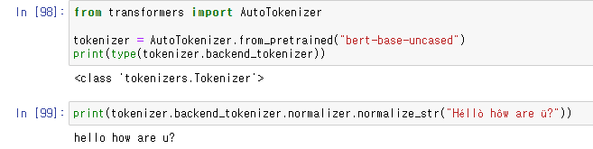 BertNormalizer를 사용하여 Normalizer 만들기,