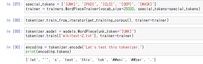 학습한 corpus에 맞게 토크나이저가 처리된 것을 볼 수 있다.