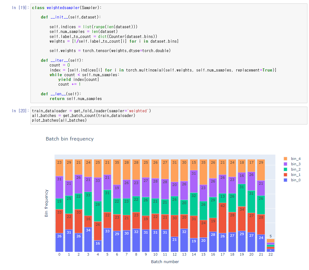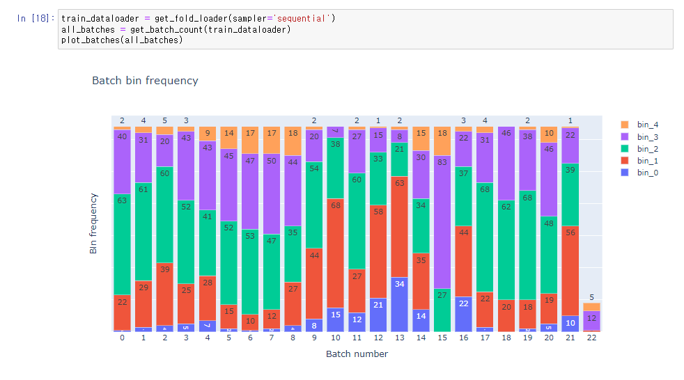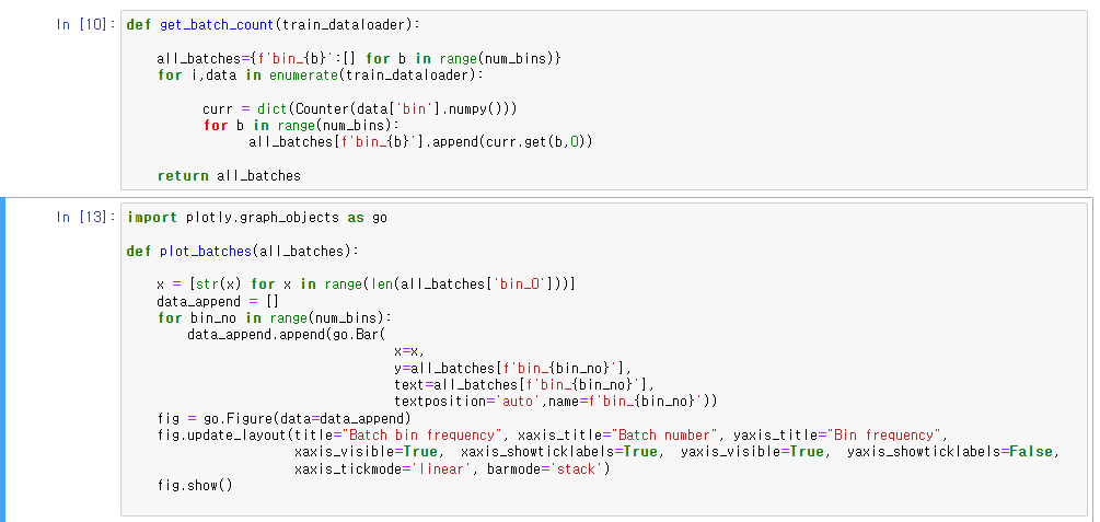 배치 내의 bin 분포를 시각화하는 함수를 작성.