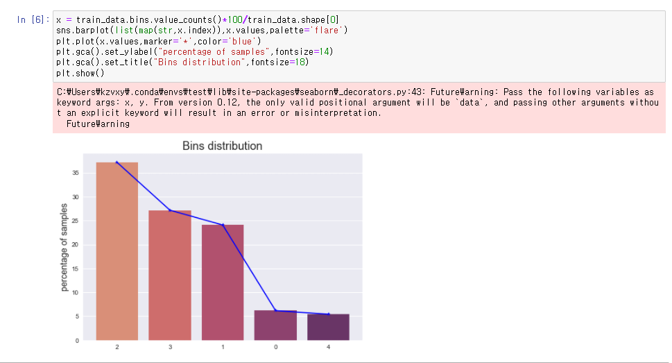 dataset을 불러오고 target을 기준으로 계급(bin)을 나눔.