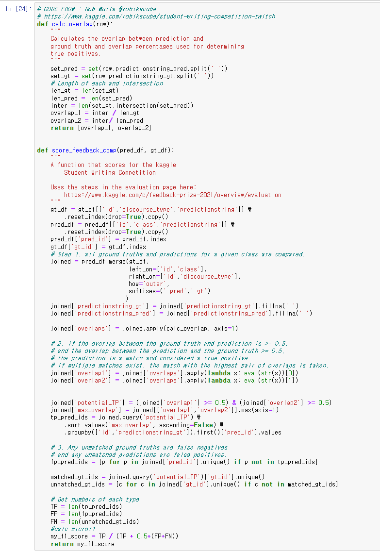 아래 함수는 위 함수를 활용해 가장 많이 겹치는 값을 뽑아내고 micro F1 스코어를 산출하는 함수