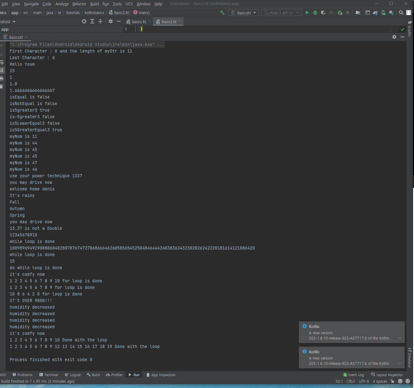 또 코틀린 문법의 기초에 대해 배웠다.
