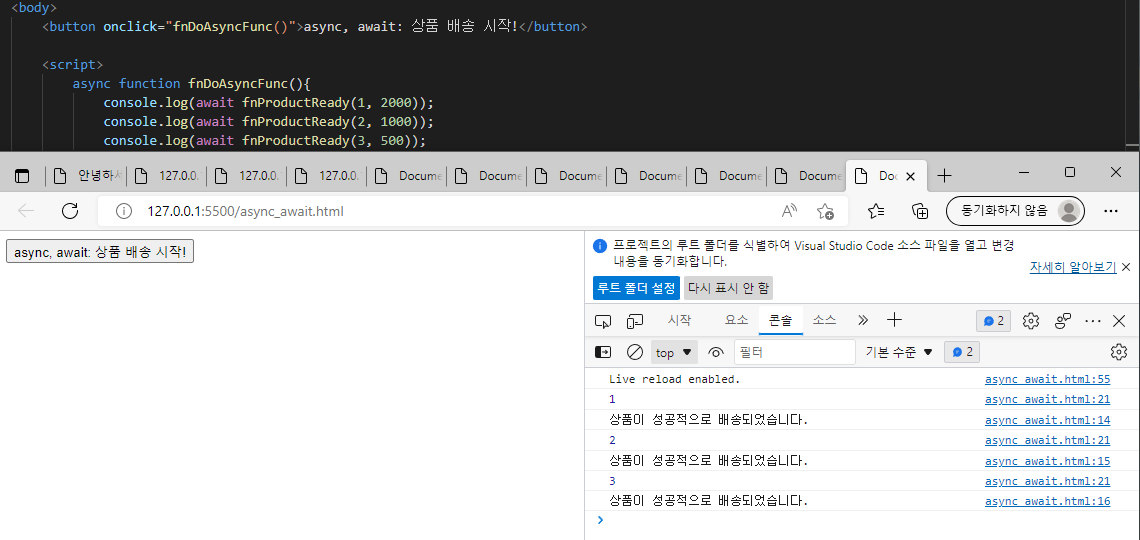 fetch 함수를 사용해 서버 응답값을 받아들이고