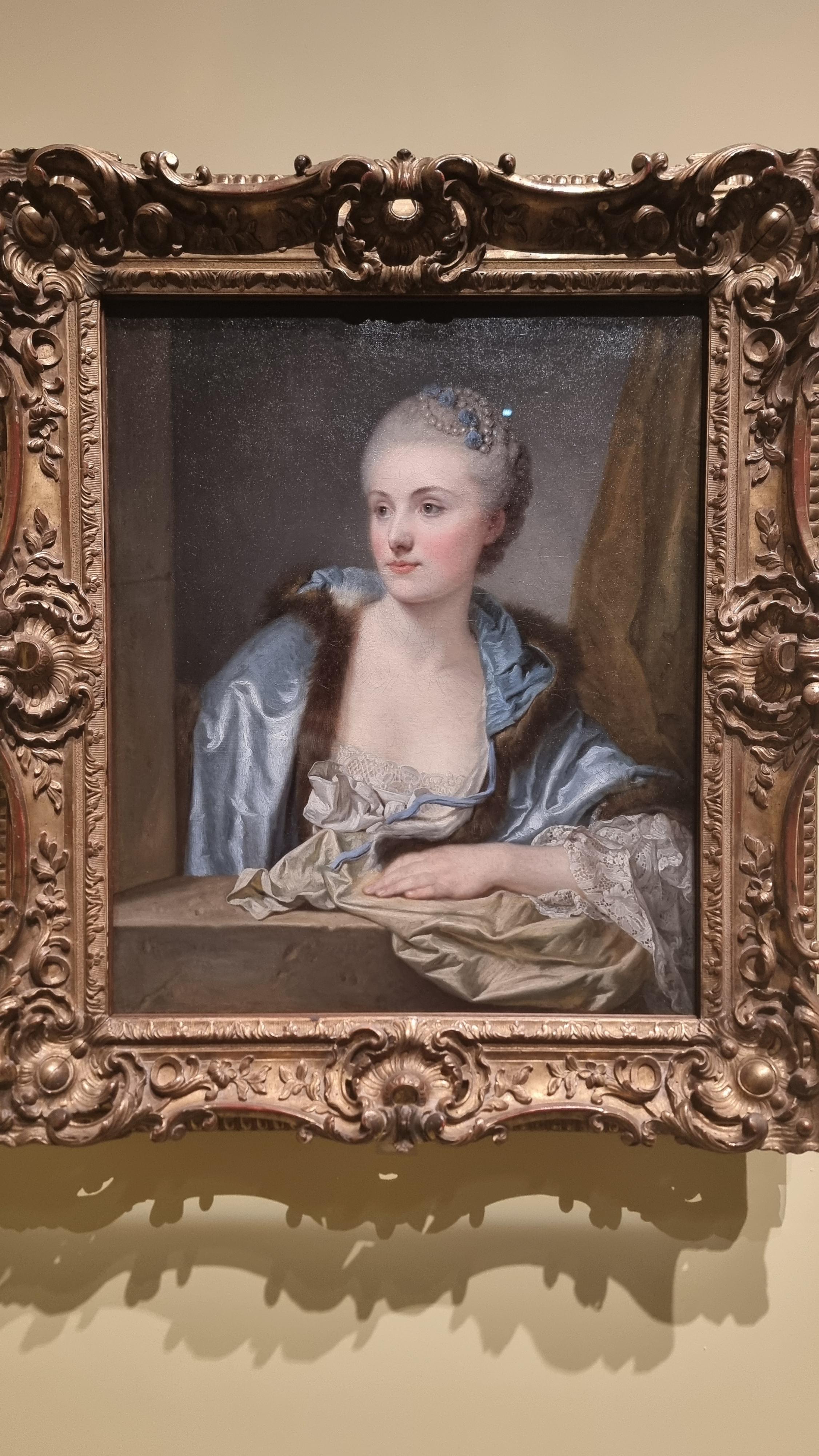 문필가이자 아마추어 배우였던 드 글레옹 후작부인을 그린 것으로 추정되는 그림이다.